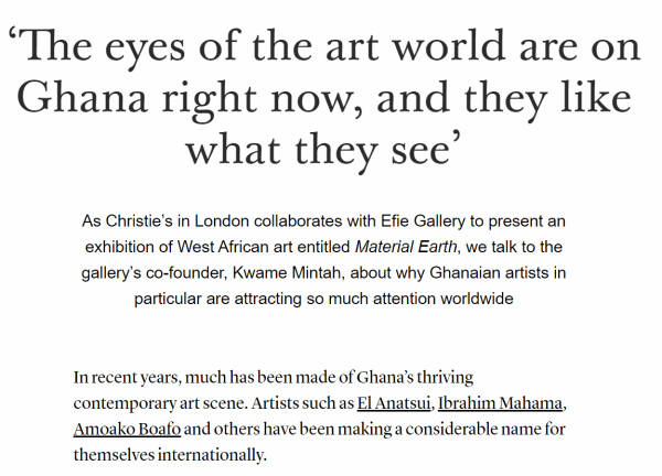 ‘The eyes of the art world are on Ghana right now, and they like what they see’